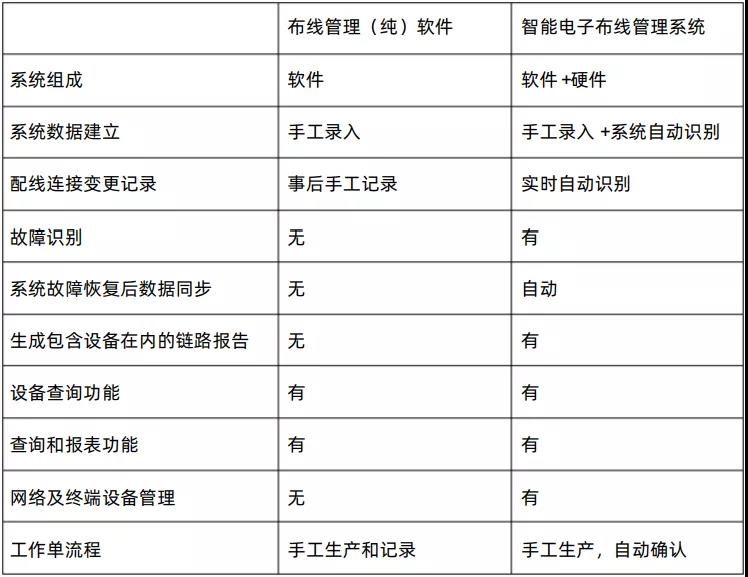 可以采用純軟件線纜管理系統(tǒng)或軟硬件一體化的智能電子線纜管理系統(tǒng)來(lái)實(shí)現(xiàn)線纜系統(tǒng)管理。系統(tǒng)功能要求如表1所示。