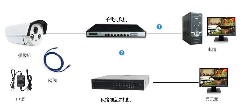 2、點(diǎn)對點(diǎn)傳輸如果多個攝像頭比較集中,可以把攝像頭連接交換機(jī)